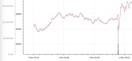 取引量をグラフに描画できるようにした。 github.com 一見するとうまくできていないようにも見えるが、あまりにも大引けに集中していると、他の数百の棒グラフが目立たないだけ、という感じだった。 取引量を正しく設定したグラフ (After) 取引量を全て100に…